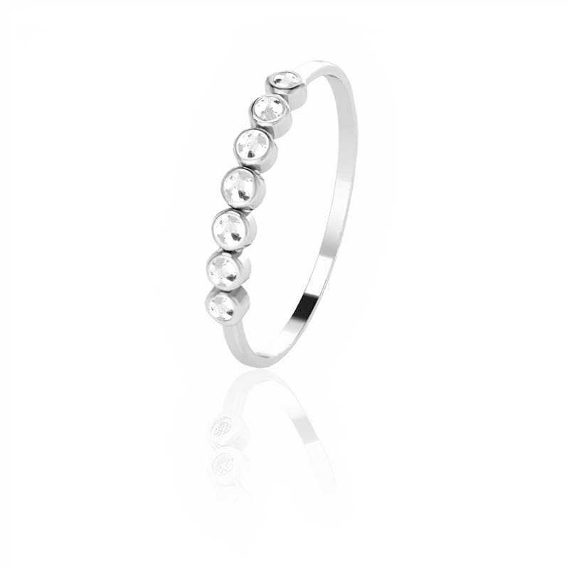 Anel Aparador Meia Aliança Zircônia (7) Branca em Prata 925 Legítima