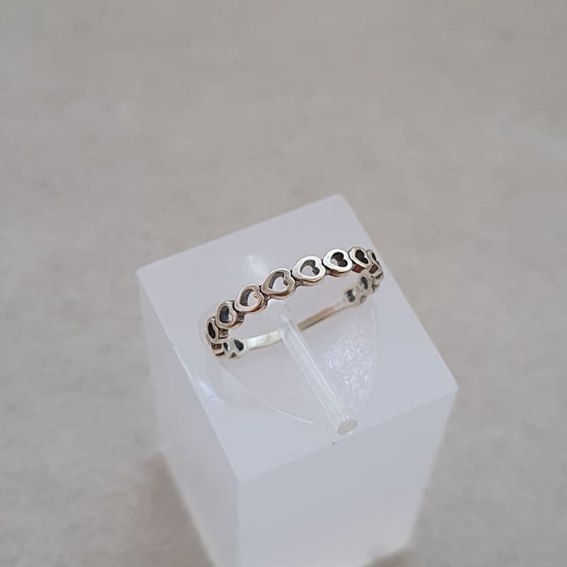 Este anel liso envelhecido é a escolha perfeita para quem busca um design delicado, mas cheio de personalidade. Feito em prata 925 legítima, ele possui um acabamento envelhecido que traz um charme único, combinado com o detalhe de corações vazados horizontais que adicionam um toque de romance e sofisticação. O design liso e clean, aliado aos corações, cria uma peça versátil e moderna, ideal para quem gosta de acessórios que se destacam sem perder a elegância.