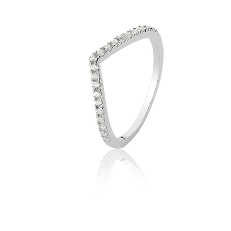 Anel Zircônia Chevron Branca em Prata 925 Legítima