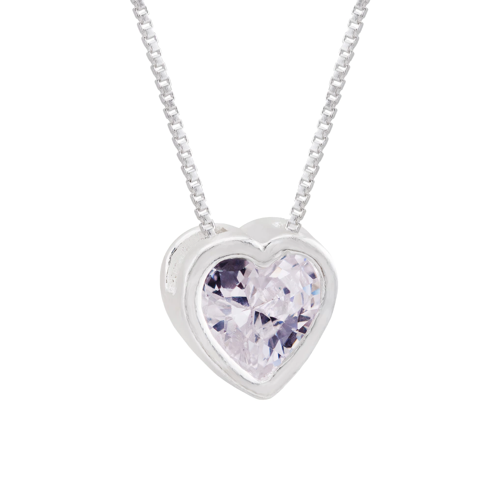 Design: Pingente em formato de coração, com zircônia de 6,5x7mm na cor branca, criando um visual elegante e sofisticado.