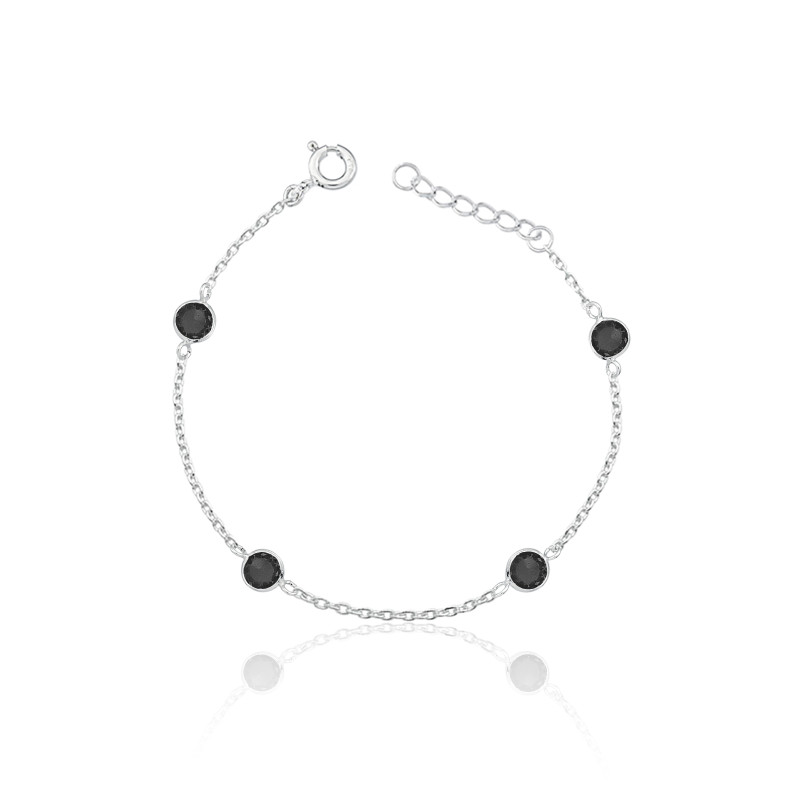 Esta pulseira é a escolha perfeita para quem deseja um toque de sofisticação e brilho. Feita em prata 925 legítima, ela apresenta 4 zircônias de 5mm com cristal preto, oferecendo um contraste elegante e misterioso. O design delicado e moderno a torna ideal para qualquer ocasião, seja para um look diário ou para momentos especiais.